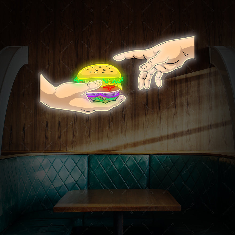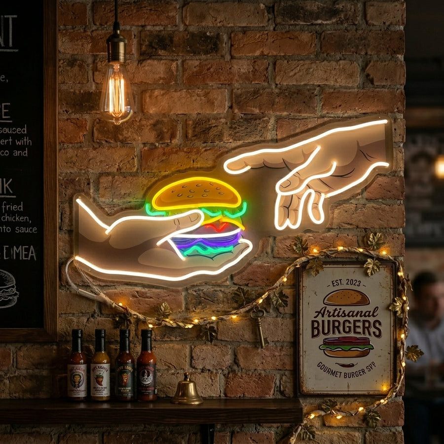 "Handen met hamburger" Neonbord
