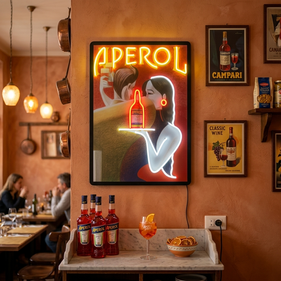 "Retro aperol -poster" UV-geprint LED-neonbord